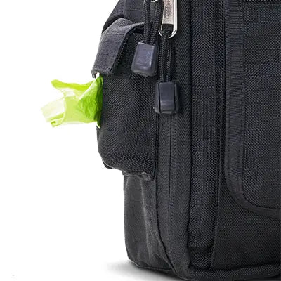 💩 Poop Bags: Easily dispensed from it's very own pocket on the outside.