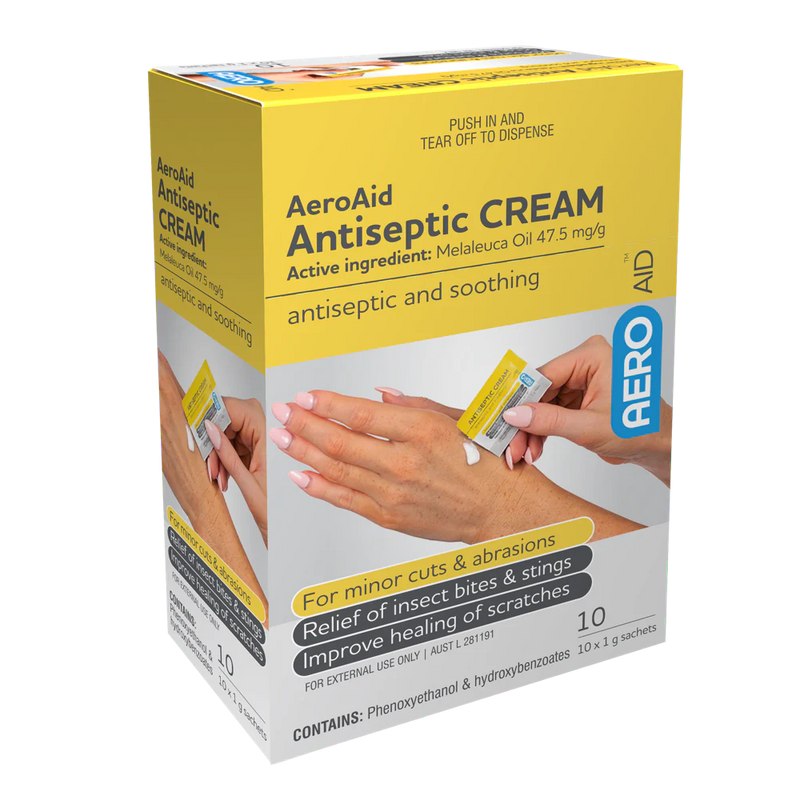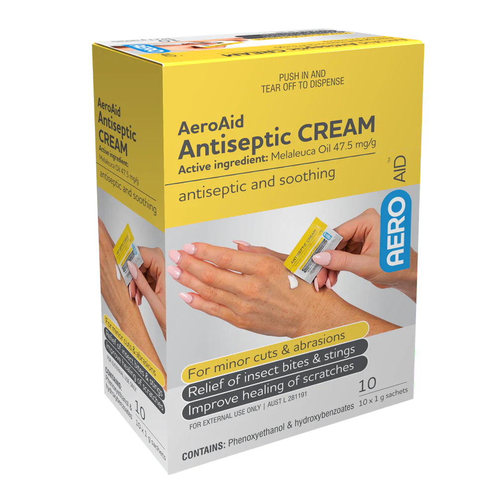 Antiseptic Cream 1g Sachet Box/10 This Antiseptic Cream includes a powerful, fast-acting formula that helps to protect and soothe the skin. Each 1g sachet is perfect for on-the-go use and the box contains 10 sachets. It helps to prevent infection and promotes healing in minor cuts, scrapes, and bites.