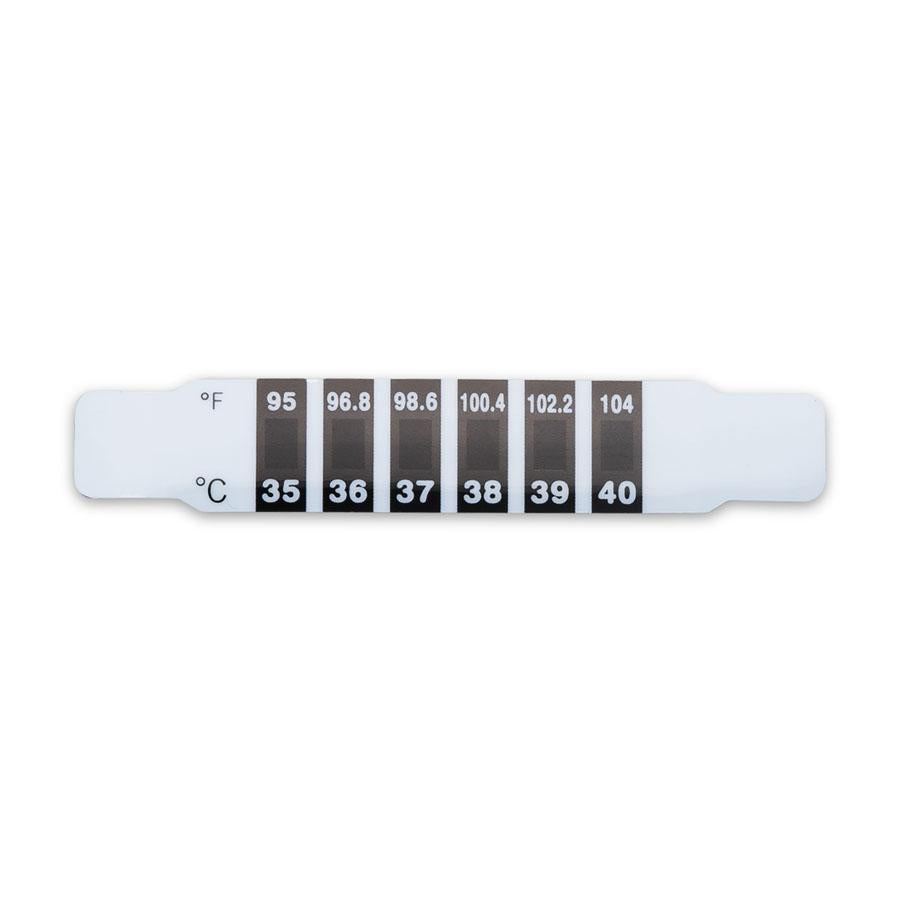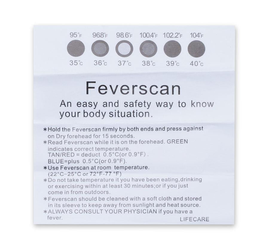 | A fever scan strip suitable for placing on a person's forehead, 9cm x 1.5cm |